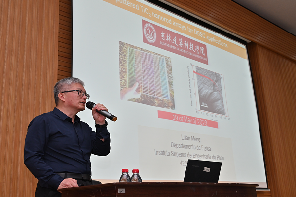为了让师生们接触国际科技前沿信息,了解国外高校情况,使我校的科研与国际接轨并提升整体水平,学校特邀葡萄牙波尔图理工大学终身教授,国家科协海外引智专家孟立建教授(华裔),于5月19日在土木馆报告厅,为我校教师作题为“氧化钛纳米棒的制备以及在染料敏化太阳电池中的应用”的学术讲座。陶进副校长、科研处、各院部主管科研领导以及相关专业师生共150余人参加讲座。报告会由科研处李丹丹处长主持。