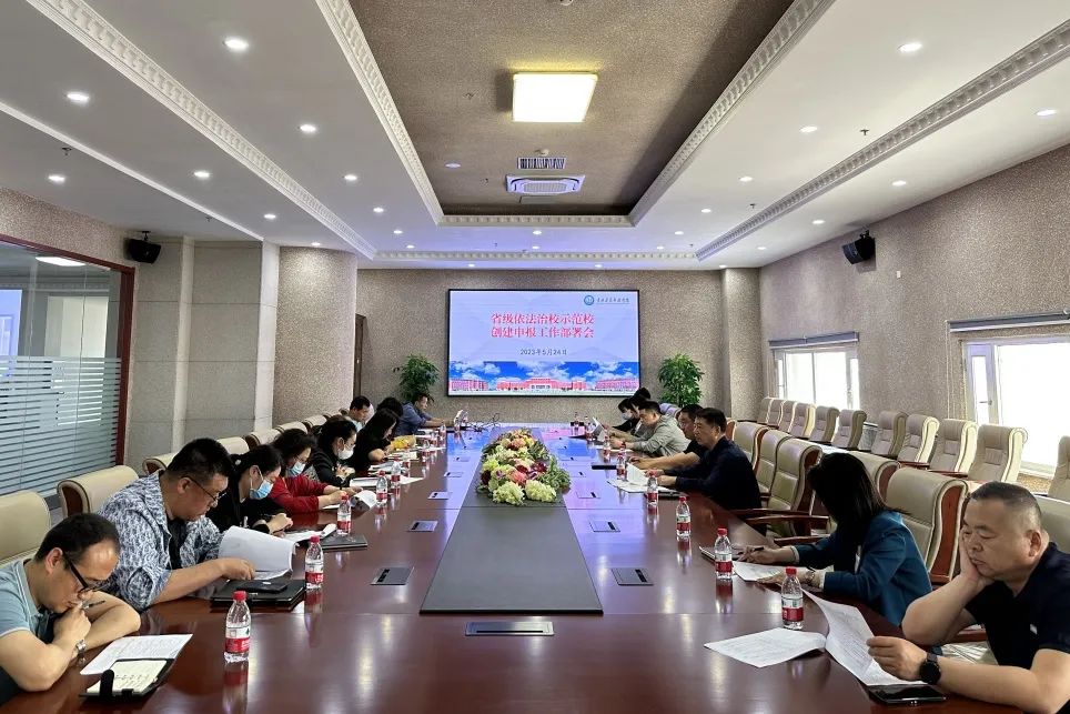 5月24日下午,学校申报省级依法治校示范校工作部署会在图书馆七楼会议室举行,学校机关党政部门负责人和相关人员20余人参加了会议,会议由校长助理兼政策法规办公室主任李英哲主持。