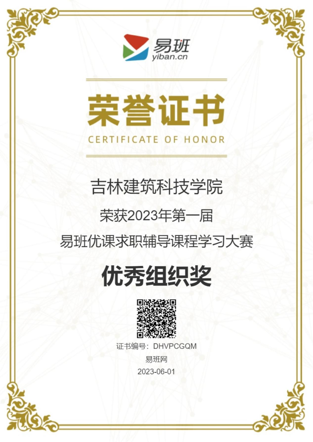 近日,教育部易班发展中心公布了2023年第一届“易班优课大学生求职技巧知识学习”活动全国优秀组织奖,吉林省共计4所高校获奖,我校为其中之一。此项活动由教育部易班发展中心依托易班网在“易班优课”平台上面向全国高校开展,历时3个月,全国总计来自21个省的142所易班共建高校报名参加比赛,47.3万大学生参与学习活动,教学活跃度达101万。我校组织大三、大四、大五学生参与了本次比赛。