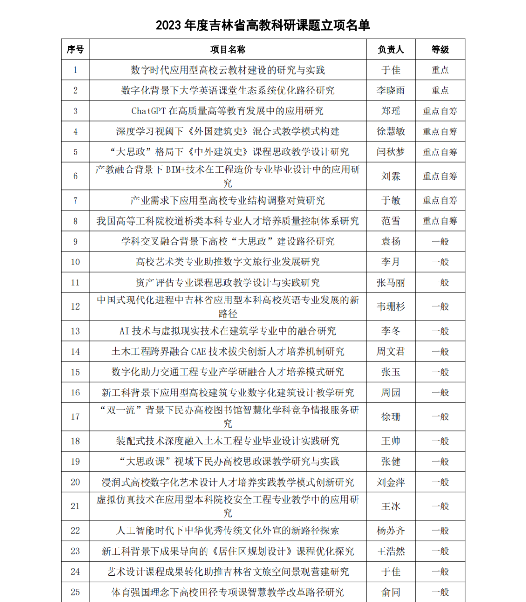 近日,吉林省高等教育学会发布了《关于公布2023年度吉林省高教科研课题立项通知》(吉高学会[2023]7号),我校43项课题获批立项,其中重点课题2项、重点自筹课题6项、一般课题35项,获批数量位居同类院校前列。