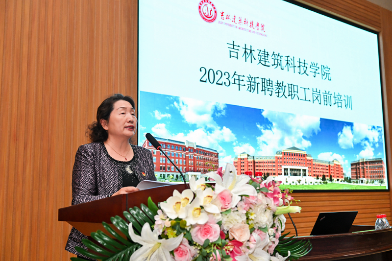 党委副书记、副校长孙绍霞在仪式上致开班词。她对各位新入职教职工加入建科大家庭表示热烈欢迎和衷心祝贺,她指出在学校全面落实“十四五”发展规划,不断推进高质量发展新阶段,新教职工的到来为学校注入“新鲜血液”,成为学校发展的新生力量,大家生逢其时,必将大有作为。她对培训提出四点希望,一是加强学习,转变观念,不断提高干事创业能力。强调既要强化政治理论武装,也要学习教学管理制度,既要学习专业技术知识,也要了解校情校史,既要学习理论知识,也要善于从实践中熟能生巧,增强做事本领;二是为人师表,教书育人,努力做到干一行爱一行。勉励新入职教职工牢记总书记嘱托,坚守为党育人、为国育才的初心使命,树立“躬耕教坛、强国有我”志向和抱负,发扬教育家精神,脚踏实地、勤奋笃行、严守师德、行稳致远;三是严于律己,勤于自省,胸中常怀规矩戒尺。督促教职工增强廉洁自律意识,加强个人修养,树立正确观念,坚守师德底线;四是端正态度,珍惜机会,努力完成学校培训任务。