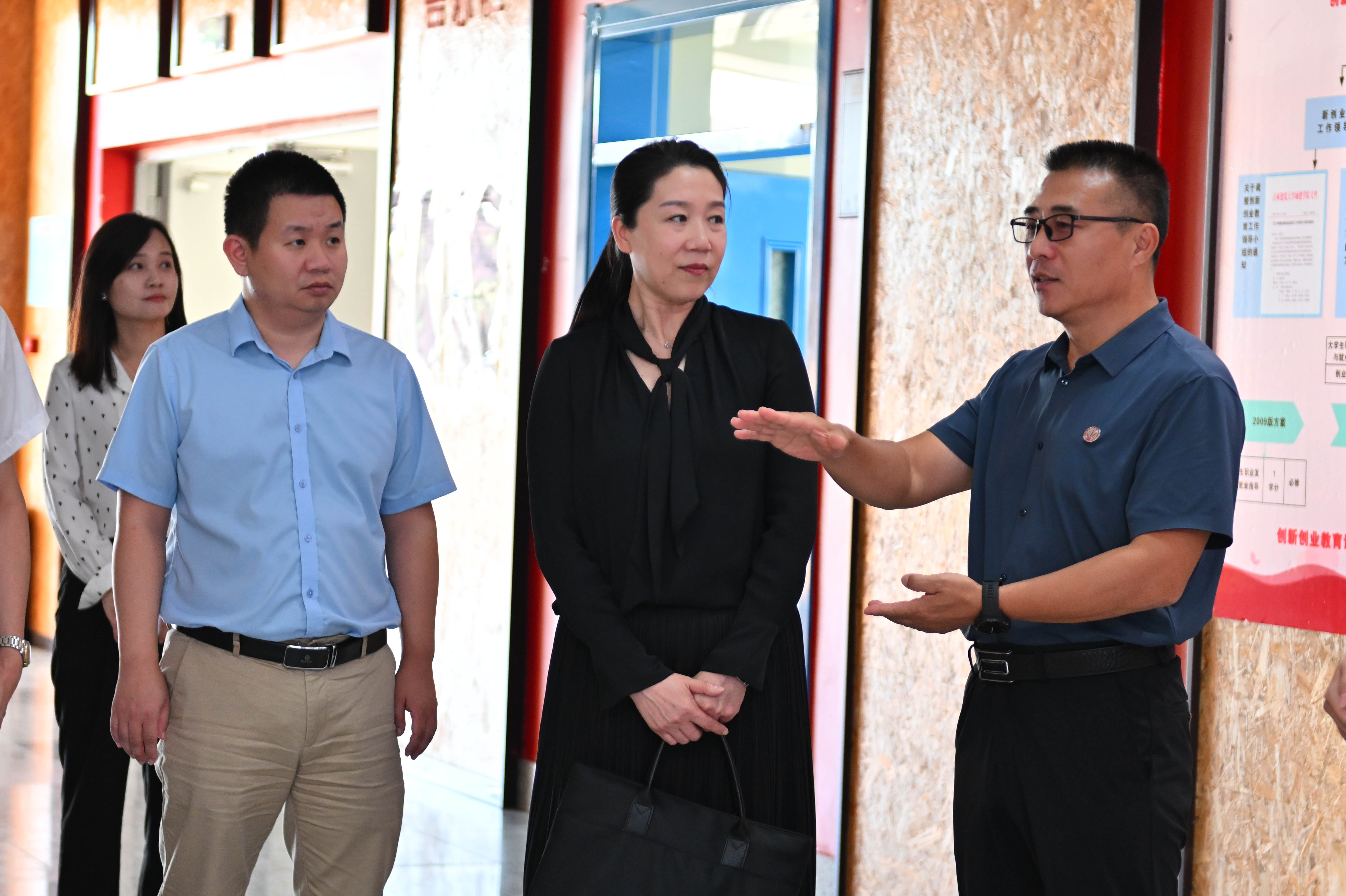 一行人首先实地走访了我校创新创业教育学院,我校的双创学院始创于2011年,大学生双创园规模为12000平方米,设有服务管理区、创新平台区、创业实践区等三大区域。2018年学校双创园被吉林省教育厅认定为吉林省高校创新创业教育改革示范基地,2019年被省发改委等五部门联合授予吉林省大众创业万众创新示范基地。