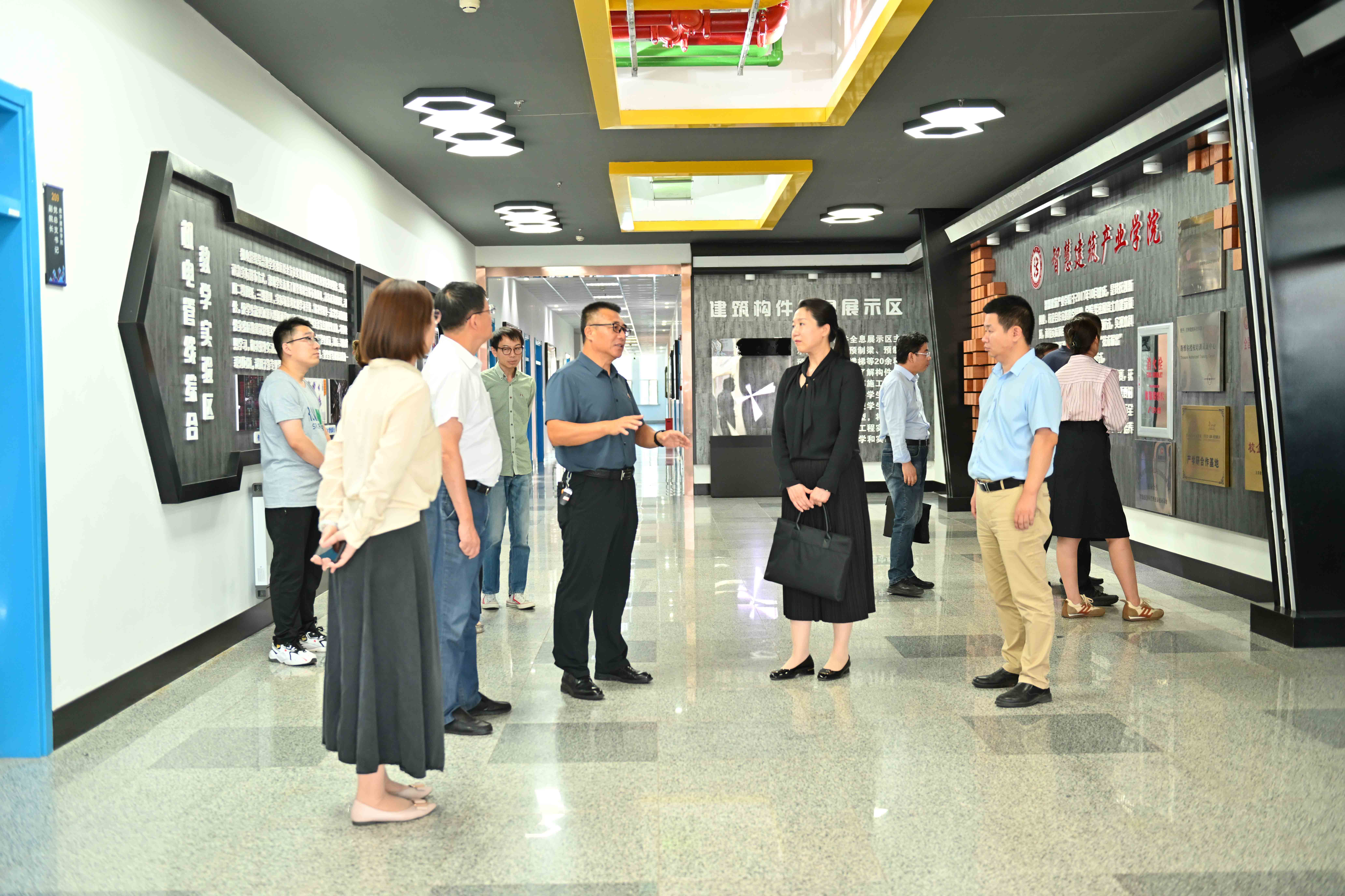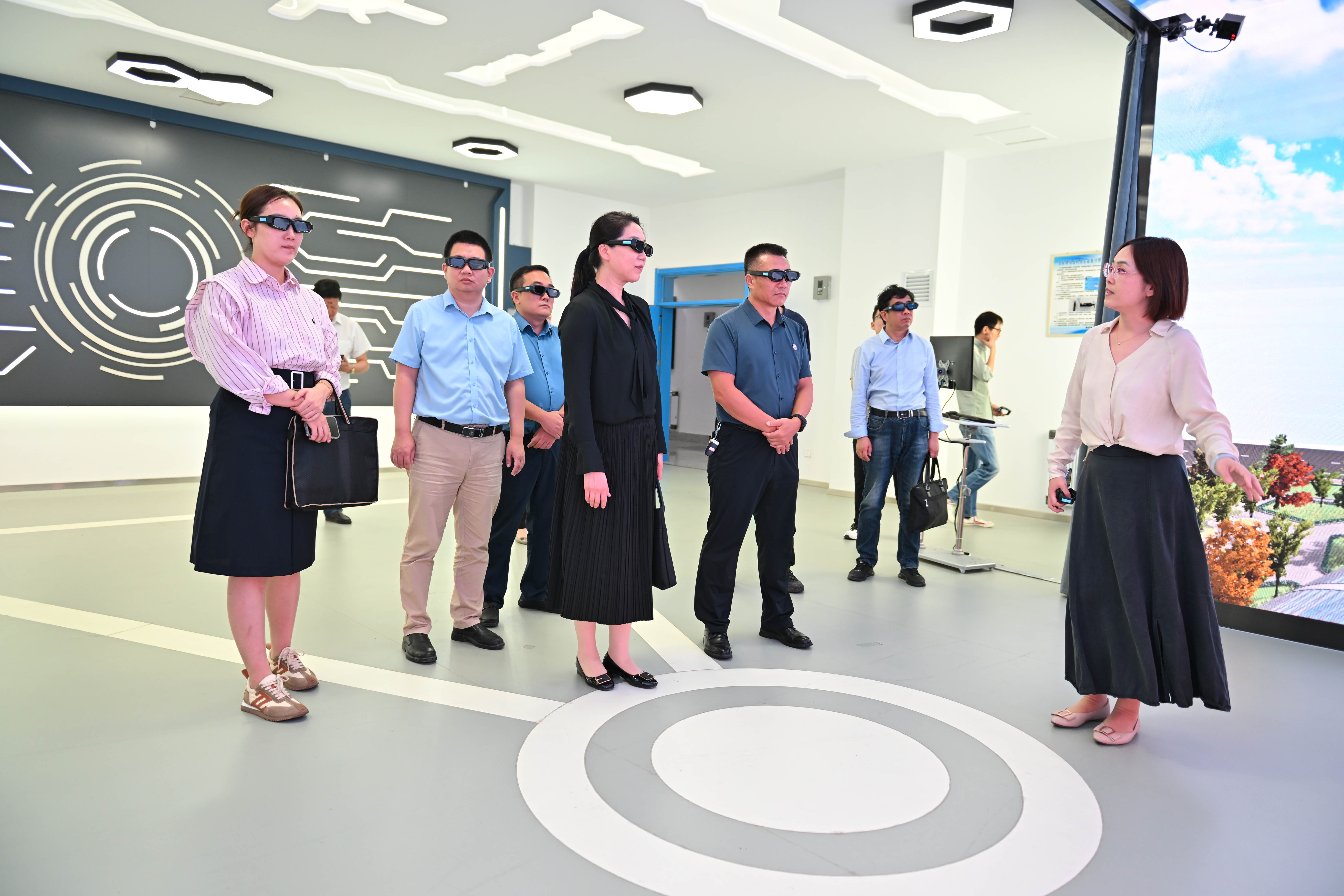 随后一行人参观了数字建造与BIM培训中心,数字建造学院创建于2020年,设有“BIM基础教研室”及“智能建造教研室”,除完成智能建造专业教学任务外,还承担全校20个专业《BIM技术基础》、《BIM实习实训》及多专业参与的《BIM协同毕业设计》。为满足建筑科技发展需要,提升学校土建类传统专业的数字化、智能化水平与能力,在学校大力支持下,累计投入2000多万元,建成数字建筑虚拟交互体验馆,AR滑轨,VR全息风扇,CAVE体验空间,VR裸眼3D等高水平的建筑信息化实验室,规模达3000平方米。