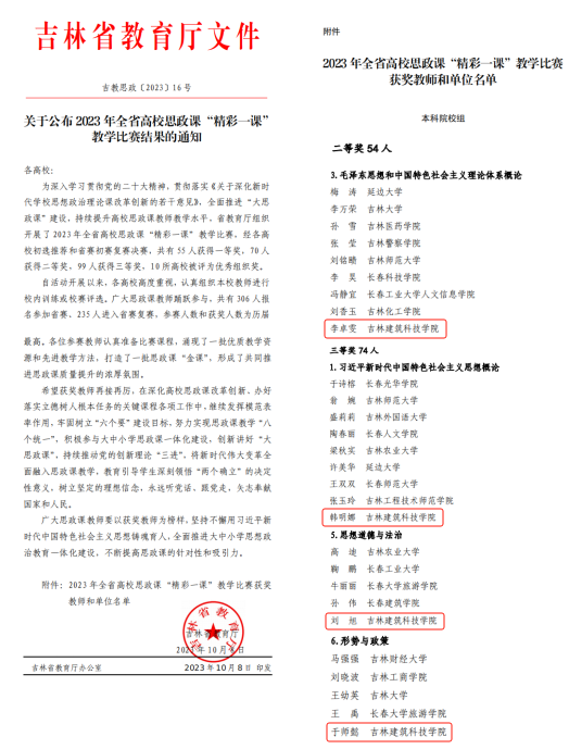近日,我校马克思主义学院4位教师在2023年全省高校思政课“精彩一课”教学比赛中取得优异成绩。其中,李卓雯老师获得二等奖,刘旭、韩明娜、于诗懿三位老师获得三等奖。