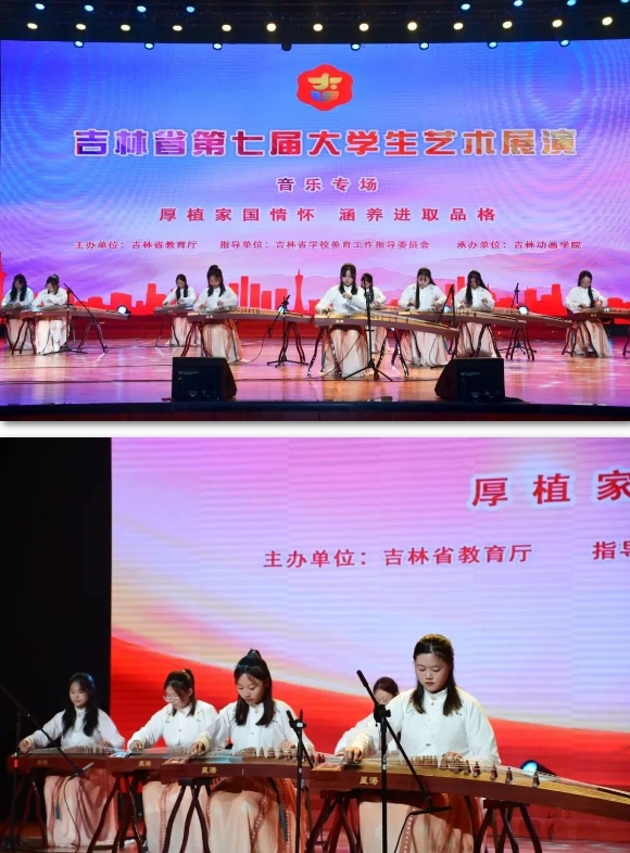 10月13日,由吉林省教育厅主办,吉林省学校美育工作指导委员会指导的“青春正当时”吉林省第七届大学生艺术展演音乐、舞蹈专场演出在吉林动画学院成功举办,我校民乐小合奏《战台风》参加吉林省第七届大学生艺术展演音乐专场演出。