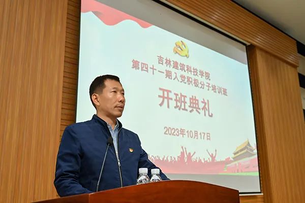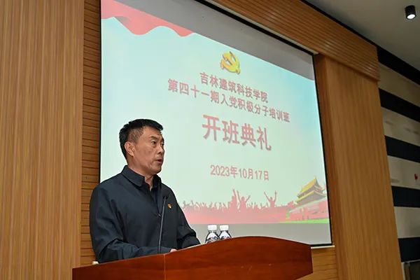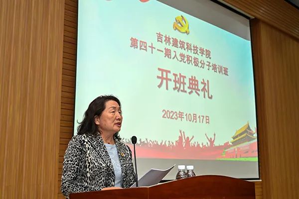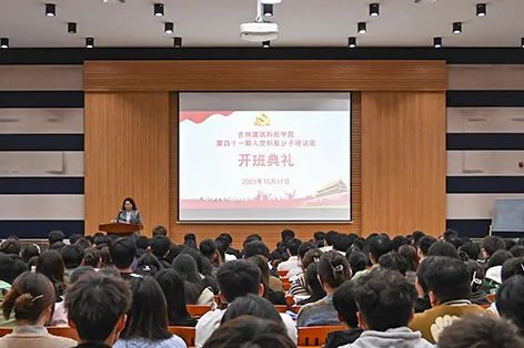 为切实做好入党积极分子培养教育工作,10月17日下午,吉林建筑科技学院党校第41期入党积极分子培训班开班典礼在土木工程馆一楼报告厅举行。校党委副书记、副校长、党校校长孙绍霞,各基层党总支书记(副书记),党校办公室成员及培训班学员参加了开班典礼。典礼由党委组织部副部长李鹏主持。
