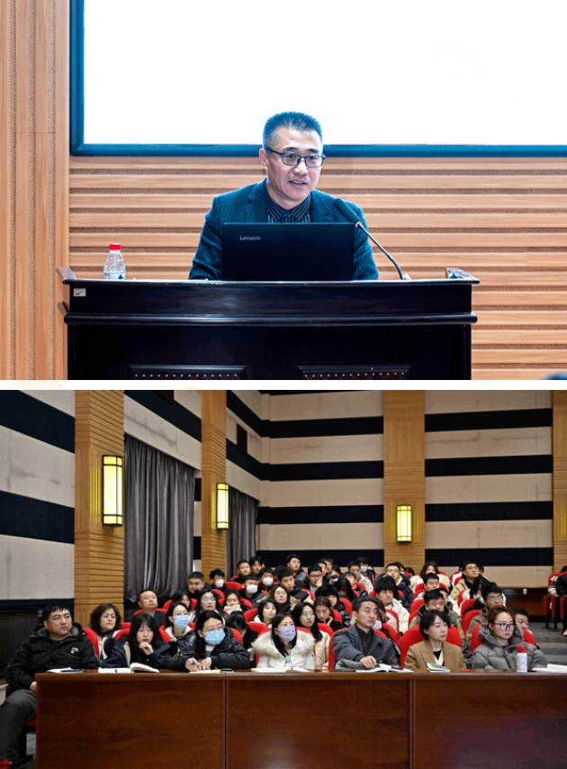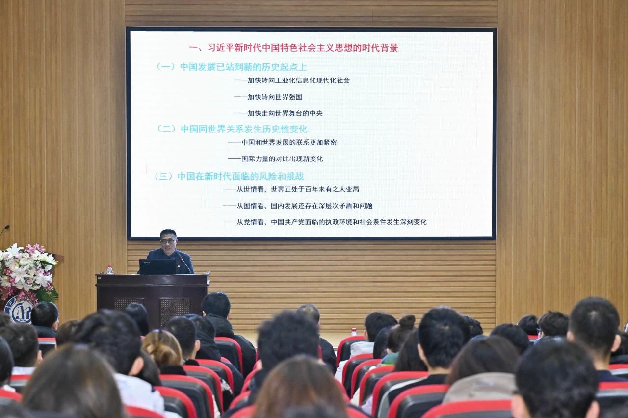 授课现场气氛热烈。韩秋叶带领大家认真学习了党的二十大报告有关内容,提纲挈领地概述了习近平新时代中国特色社会主义思想的时代背景、科学内涵和历史地位。特别强调指出“十个明确”“十四个坚持”“十三个方面成就”“六个必须坚持”凝结着我们党认识世界、改造世界的宝贵经验和重大成果,体现了理论与实际相结合、认识论和方法论相统一的鲜明特色,共同构成了习近平新时代中国特色社会主义思想的科学体系。他结合自己的学习体会,着眼学校全面推进百年民办大学建设目标,系统分析了学校当前建设发展面临的新形势和任务,提出了全面推进学校建设发展的新思路和举措:一要科学研判形势,树立危机意识,做到未雨绸缪;二要紧紧围绕吉林省经济社会发展需要,培养高水平应用型人才;三要全面贯彻落实习近平总书记如何成为“四有”好老师的要求;四要树立信心、迎难而进、勤奋严谨、砺志创新,为实现百年民办大学目标不懈奋斗;五要全面加强党的领导,统一思想、凝心聚力,团结师生员工共同奋斗。