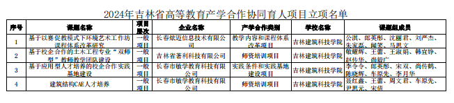 近日,吉林省教育厅公布了2024年吉林省高等教育产学合作协同育人项目立项名单,我校与长春炫迈信息技术有限公司合作的“基于以赛促教模式下环境艺术工作坊课程体系改革研究”等4个项目获批2024年吉林省高等教育产学合作协同育人项目立项,涵盖实践条件和实践基地建设、教学内容和课程体系改革和师资培训等三类项目。