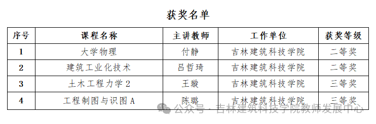 近期,由吉林省教育厅、吉林省总工会主办、长春理工大学承办的“第四届吉林省高校教师教学创新大赛”圆满落幕。我校在此次赛事中表现出色,荣获二等奖2项,三等奖2项。