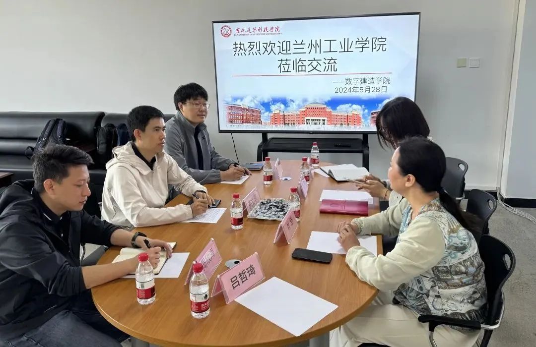 为切实加强院校间的教学经验交流,深入探讨智能建造技术专业的发展趋势和人才培养需求,兰州工业学院土木工程学院副院长高文琪、智能建造专业教师李京榜、周欣海于5月28日访问了我校数字建造学院,进行了观摩与交流活动。我校数字建造学院院长刘喆、副院长孙恒、院长助理吕哲琦以及教师吴奔鑫参加交流。