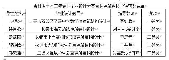 赛事由吉林省教育厅高教处指导,吉林省土木工程专业毕业设计大赛组委会、吉林省土木建筑学会主办,长春建筑学院承办。本次大赛吸引了省内10所高校的积极参与,共提交了50个高质量的毕业设计作品。经过严格而专业的专家评审,最终评选出一等奖作品13项、二等奖作品17项、三等奖作品20项。