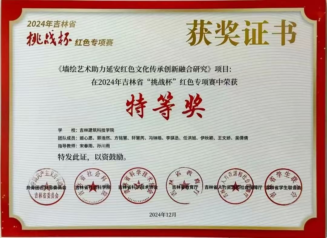 近日,2024年吉林省“挑战杯”红色专项赛评选结果揭晓,我校在此次赛事中获奖11项,其中特等奖1项、一等奖2项、二等奖4项及三等奖4项。