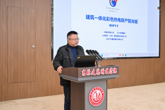 报告会上,王大伟介绍了彩色热电联产阳光板的原理、优势及应用前景。他指出,在我国“双碳”战略背景下,建筑行业节能减排需求迫切,而传统光伏、光热技术存在诸多局限性。彩色热电联产阳光板则实现了两者的有机结合,在提高能源利用效率的同时,又降低了碳排放。他还介绍了一型和二型PVT板的特点及适用场景,分享了该技术在民用建筑以及工业领域的应用案例,展示了其在不同场景下的显著优势。