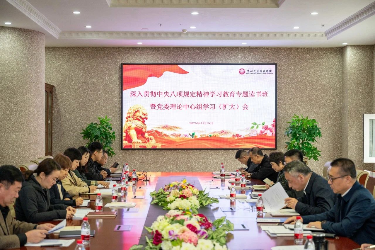 4月15日,吉林建筑科技学院召开深入贯彻中央八项规定精神学习教育专题读书班暨党委理论中心组学习(扩大)会,专题学习中央八项规定精神。党委书记韩秋叶主持会议并讲话,党委理论中心组成员、各党总支书记(副书记)参加会议。