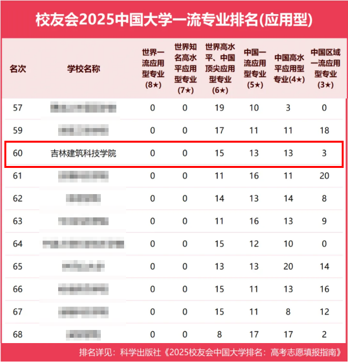 ▲学校位列中国大学一流专业排名(应用型)第60位