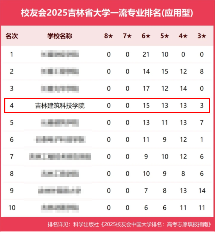 ▲学校位列吉林省大学一流专业排名(应用型)第4位