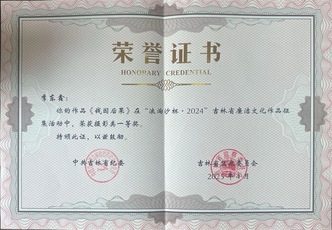日前,吉林省纪委监委公布“浪淘沙・2024”吉林省廉洁文化作品征集活动评选结果。我校学生在活动中表现优异,共获奖5项,包括一等奖1项、二等奖2项、三等奖1项、优秀奖1项。