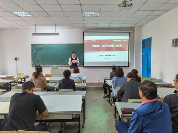 6月3日,基础科学部教工第一党支部举办了“明党史、悟初心”党史学习教育系列专题党课。支部书记付静以“中国共产党百年历程和启示”为题作了主题报告。一支部全体教师党员聆听了报告。