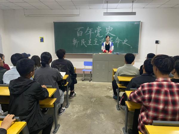 随后学生党支部书记王洪伟进行“百年党史之新民主主义革命史”的讲授,她强调中国革命历史对共产党人来说是最好的营养剂,作为学生党员要认真学习党史,在艰苦卓绝的奋斗史中汲取力量,找到前进的方向,不断增强坚守初心使命的思想与行动自觉,增强理想信念,坚定信心,直面挑战、在应对变局中开新局,在守正创新中担使命。