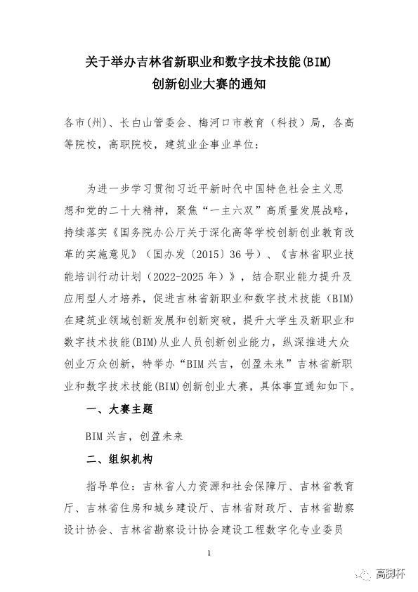 关于举办吉林省新职业和数字技术技能(BIM)创新创业大赛的通知