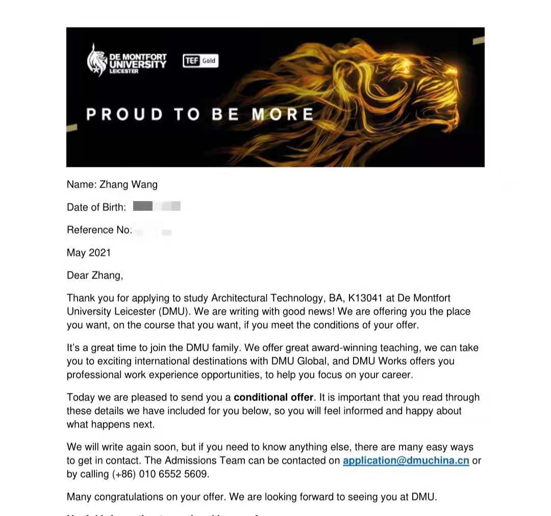 2021年同样喜报频传,我校有三名同学顺利完成本专业课程并经过校内雅思班的学习创造佳绩,顺利获得德蒙福特大学的有条件offer。建筑与规划学院城乡规划专业18级学生眭睿、王漳获得建筑技术(Architectural Technology)专业有条件offer;管理工程学院工程管理专业18级陈美伊获得会计与金融(Accounting and Finance)专业有条件offer。