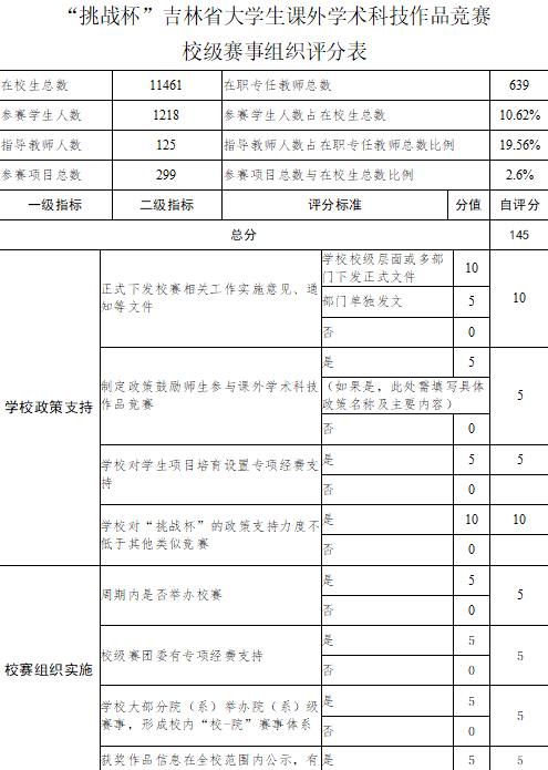 】关于第十七届“挑战杯”吉林省大学生课外学术科技作品竞赛 校级赛事组织评分表公示