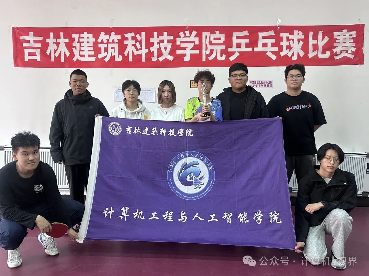 为弘扬体育精神,展现学院风采,计算机工程与人工智能学院乒乓球队积极参加了学校举办的2025届乒乓球比赛。经过多轮激烈角逐,队员们凭借精湛的球技和顽强的拼搏精神,最终勇夺亚军。