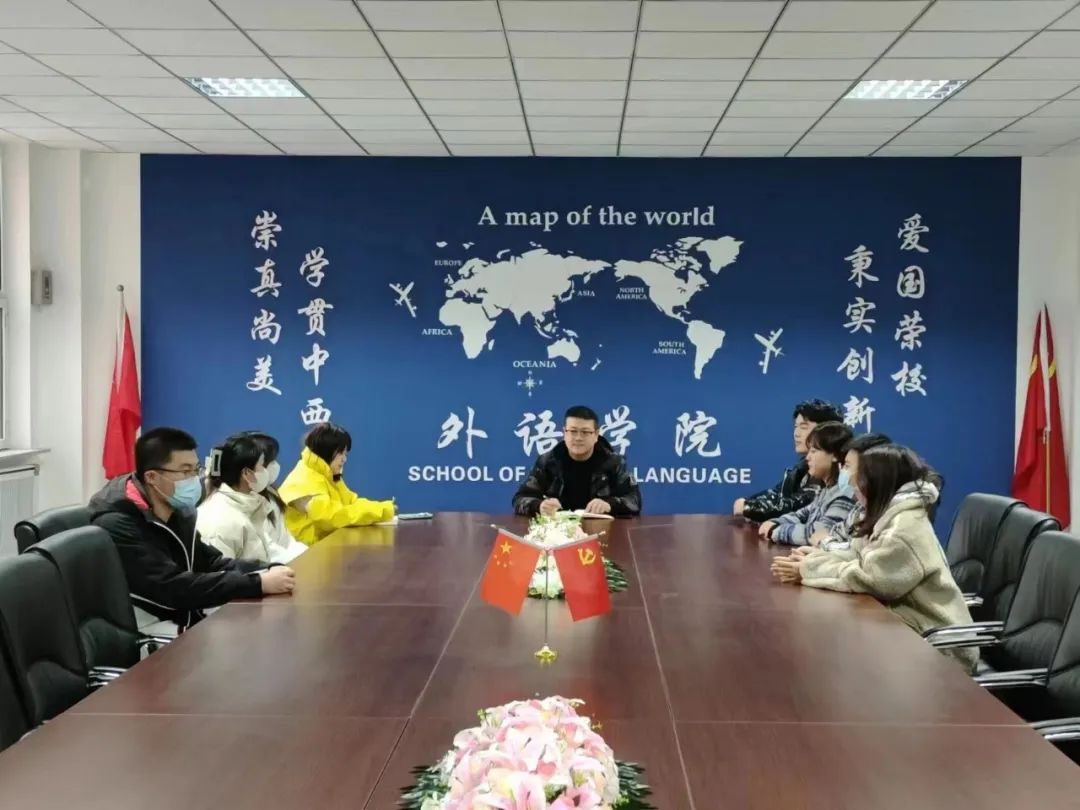 为深入了解和掌握学生返校后的最新思想动态,做好新学期学生思想政治和教育教学工作,外语学院于2月27日在文管楼四楼会议室召开学生返校思想动态座谈会。本次会议由外语学院党总支副书记陈超主持,外语学院辅导员邱源、主要学生干部及各班级代表参会。