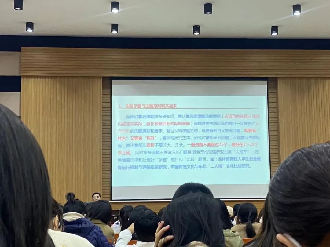 为切实提高我校社会科学类项目申报水平,引领全校教师开阔学术视野、启迪创新学术思想、规范社会科学研究课题申报,促进我校科研申报工作的有效开展,我校积极搭建交流平台,广纳博学鸿儒,并于2023年3月10日下午邀请吉林省社会科学规划基金办公室副主任、吉林省教育科学专家库张林祥来我校开展“如何规范申报社会科学研究课题”的专题科研学术报告。外语学院积极组织全体教师参加了此次科研学术报告会。