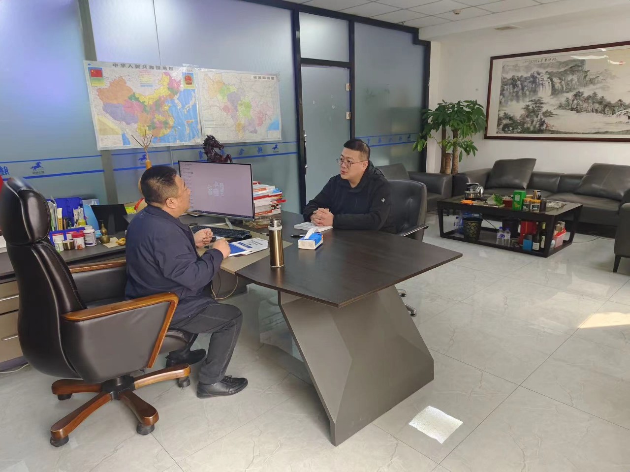 走访中,外语学院党总支副书记陈超在腾飞教育培训学校张亮校长和工作人员的陪同下详细了解了企业的发展历程、企业文化及公司经营情况,并仔细询问了该企业的用人需求。他表示,学院始终坚持立德树人根本任务,坚持就业育人目标,优化学科专业布局,致力于产教融合、科教协同。张亮校长则就需要引进人才的岗位、条件、待遇等方面作了说明,并对学院毕业生培养质量和职业能力进行了高度评价。希望进一步与学院进行深度合作,发挥校企融合在人才培养中的重要作用。双方围绕企业现状、人才培养、校企合作、发展路径和合作意向等方面进行了深入探讨,共同查找学科专业设置、就业服务等方面存在的短板,为细致做好就业指导服务、加强就业政策宣讲做充足的准备。