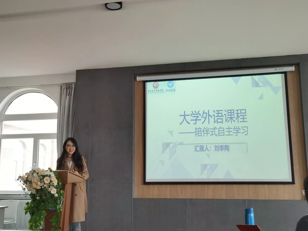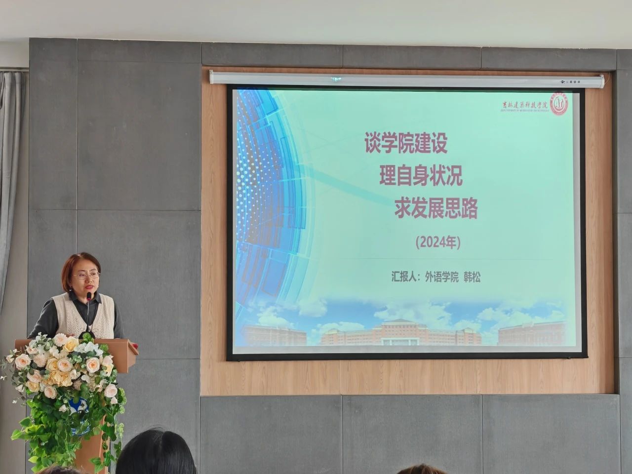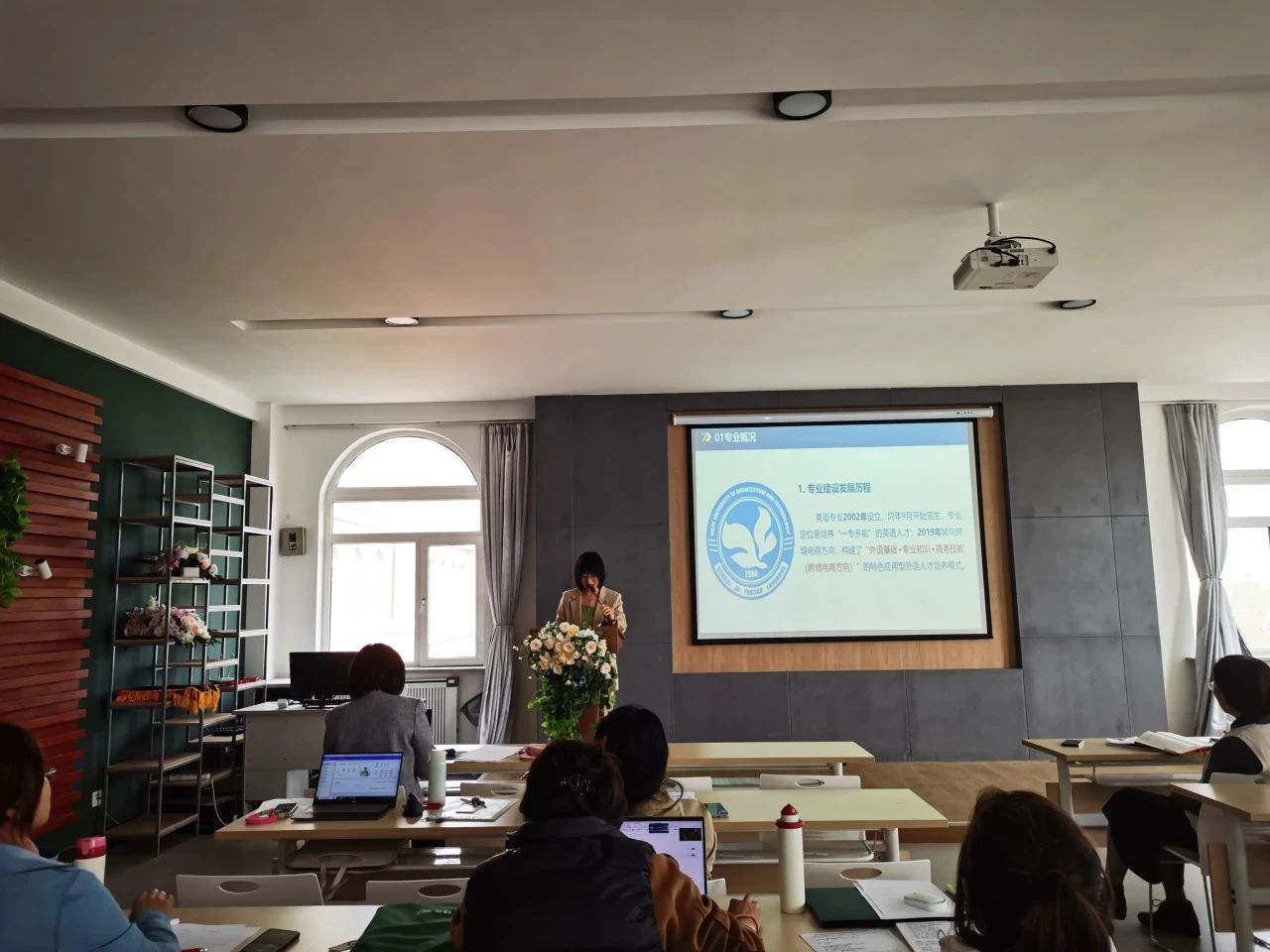 外语学院“三说”活动由院长助理齐媛媛主持,外语学院院长韩松、各教研室主任及全体教师参与了活动。首先,来自英语专业教研室、公共外语第一教研室和公共外语第二教研室的六位老师分别针对所教授课程展开汇报分享,主要依据专业人才培养目标、毕业要求和课程教学大纲,围绕课程目标、课程作用、课程内容、课程思政、教材选用、教学方法与手段、课程评价、课程改革等方面进行说课。随后,各教研室主任分别就本专业建设发展历程、人才培养、师资队伍、教学资源、产教融合、质量保障等方面的发展现状、建设成效、特色优势、面临挑战和建设规划等方面进行说专业。最后,外语学院院长韩松围绕外语学院建设发展历程、教学基本建设、应用型人才培养、教学质量保障、学生综合发展、科学研究与社会服务等方面的发展现状、特色育人举措、面临挑战及未来发展趋势等内容进行说学。