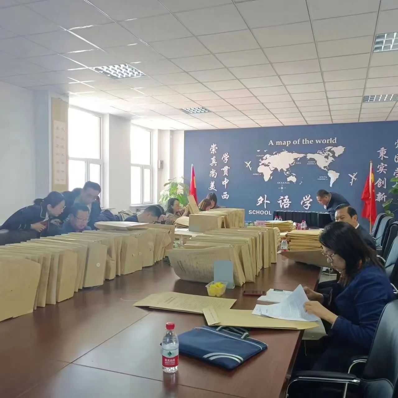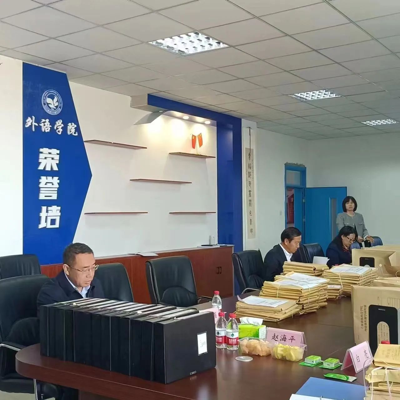 4月18日,外语学院迎来了我校过程性教学档案资料规范性抽检工作。此次抽检由校长赵海平亲自带队,质控办主任褚亚旭、教务处副处长白亮、督导组成员王颖以及评建办、教务处检查组成员共同参与。
