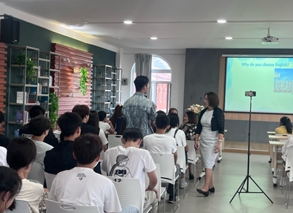 外语学院院长韩松首先代表学院对新生的到来表示热烈欢迎,随后为全体新生带来了生动而深刻的“院长说学院”主题讲座,她在讲座中介绍了外语学院的专业建设,师资队伍以及取得的各项成绩和荣誉,同时她强调了大学阶段对个人成长的重要意义,鼓励新生们珍惜时光、勇敢向前,积极参与到班级建设及我院的各项工作中去。同时,她希望新生要学会自我管理,严格要求自己的言行举止,设定学习目标,不断提升自己,努力成长为复合型人才。