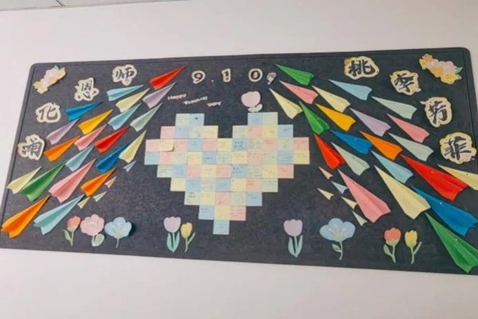 春风化雨润桃李,一片丹心育英才。外语学院全体教师用责任担当未来,用爱心温暖心灵,用智慧点亮生命。老师们的暖心、用心和贴心都被学生们所牢记。一个个手工制作的纸飞机将祝福表达在其中,一朵朵亲自裁剪的鲜花将情感融入在其中。