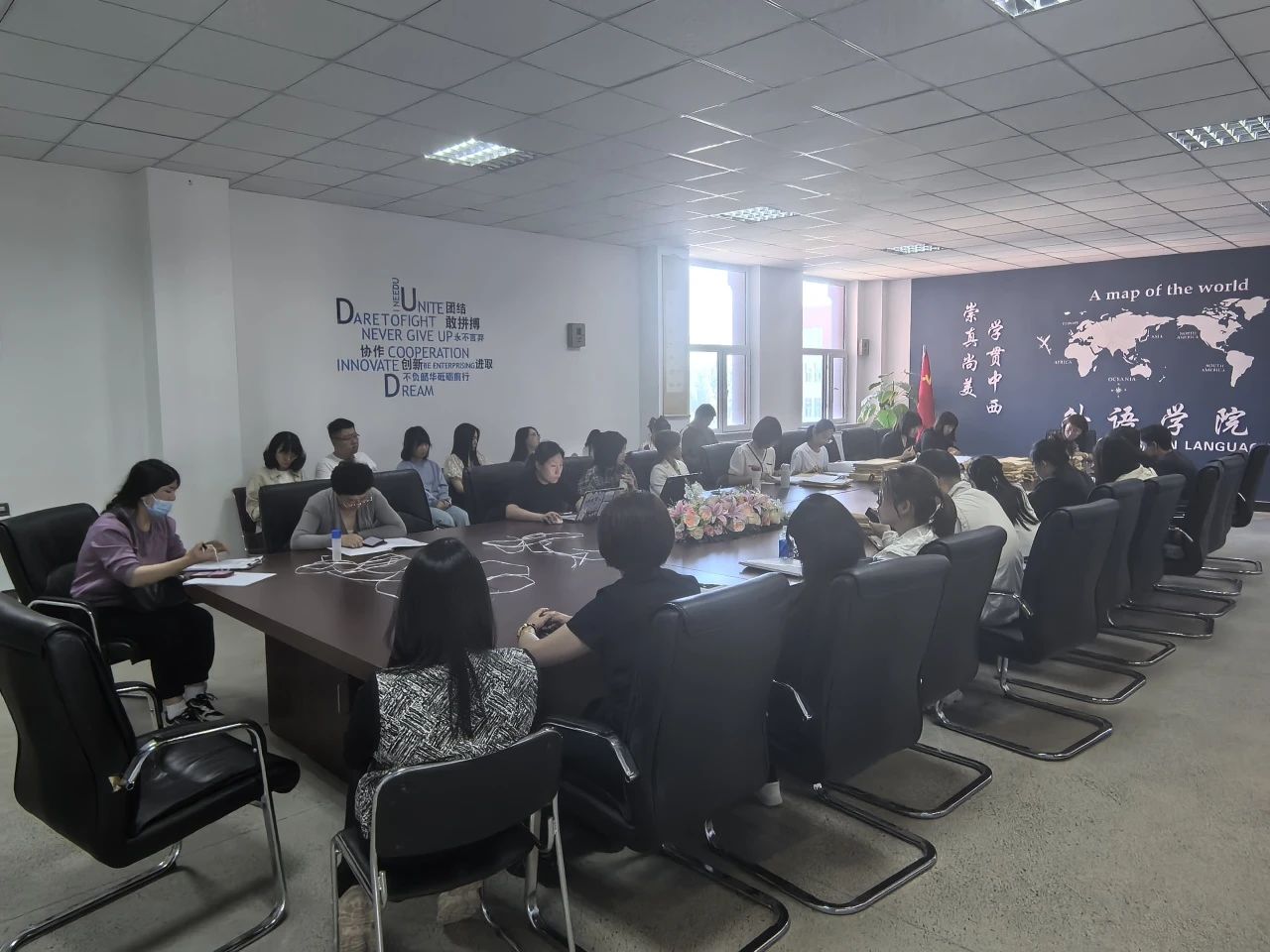 为确保学校教育教学工作平稳有序进行,外语学院于2024年9月18日下午在文管楼407组织召开了本学期第四周工作例会,韩松院长主持会议,副院长李晓雨、院长助理齐媛媛和全体教师参加了本次工作例会。