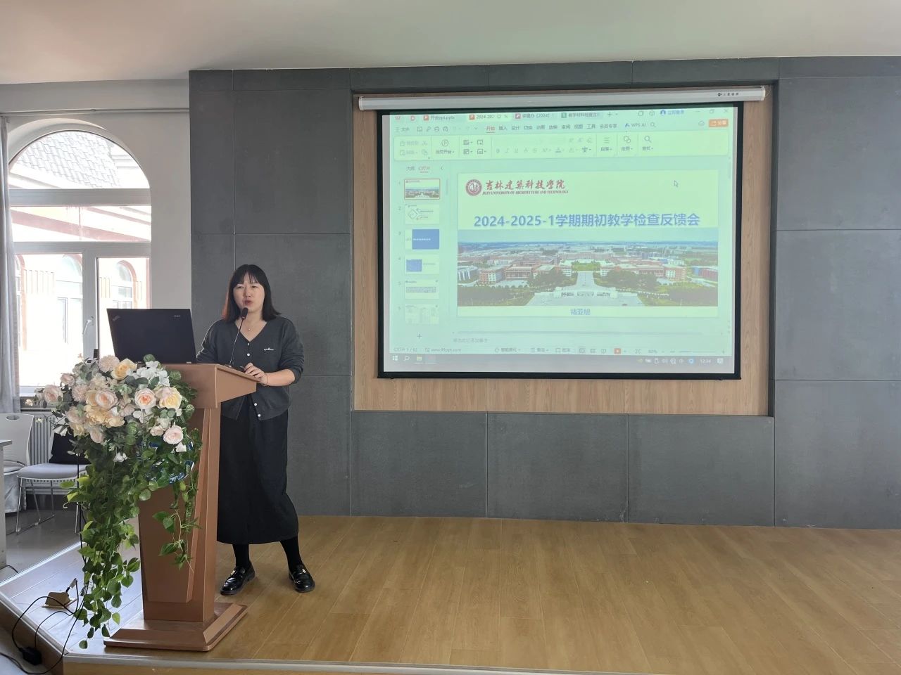 副院长李晓雨在会上对本学期期初教学检查情况进行了详细反馈,对检查中存在的问题进行了重点强调,同时对2022-2023、2023-2024两个学年教学材料复查工作进行了周密部署,着重强调了教学大纲、授课计划、平时成绩考核方案、教案等教学材料的一致性、规范性和逻辑自洽性,并详细区分了不同年级教学大纲版本的区别。此外,还布置了整理课程习题库、试题库及视频资源库等相关工作,要求所有任课教师要高度认真负责地开展此项工作,为学校本科教学工作合格评估自评自建工作奠定坚实基础。