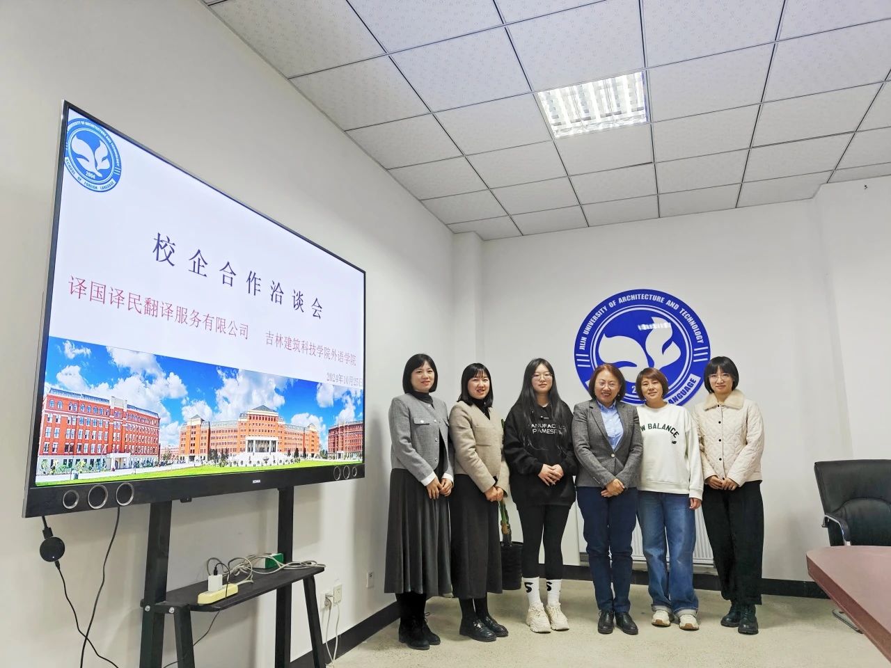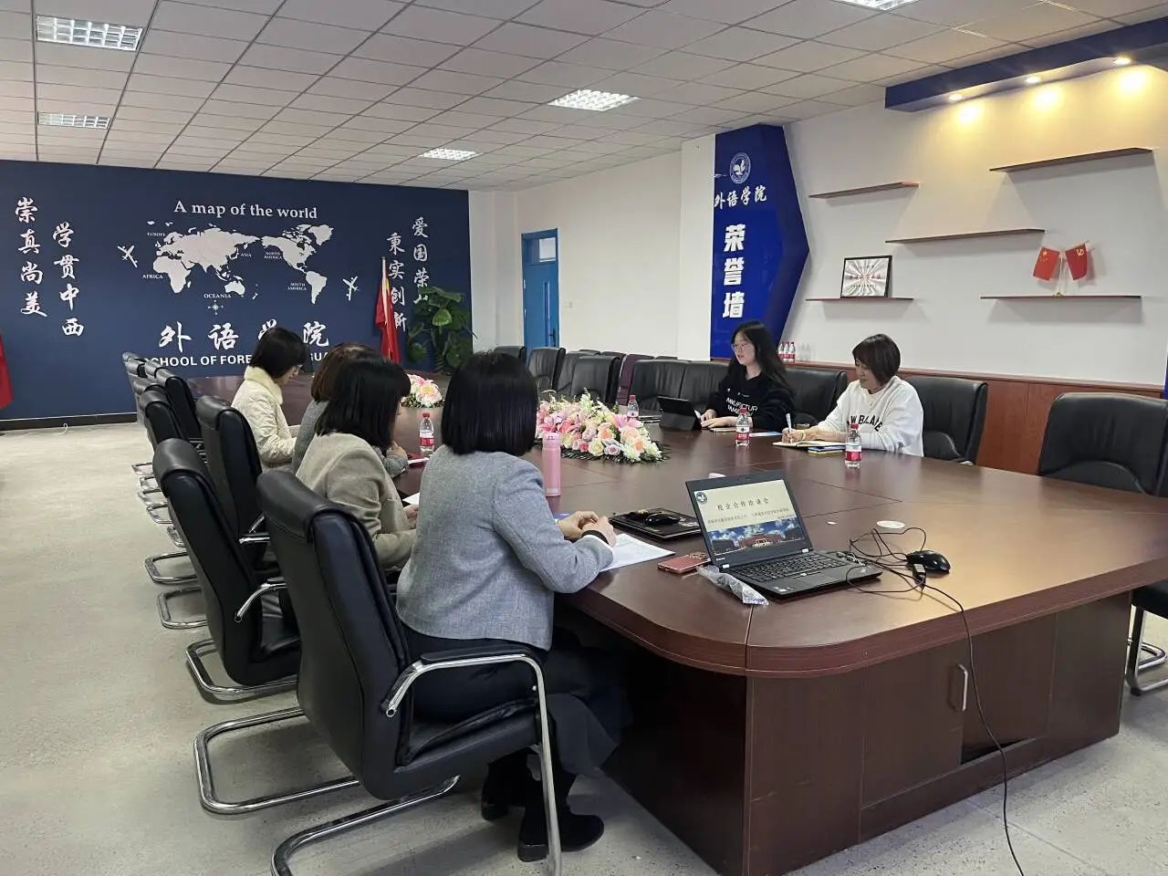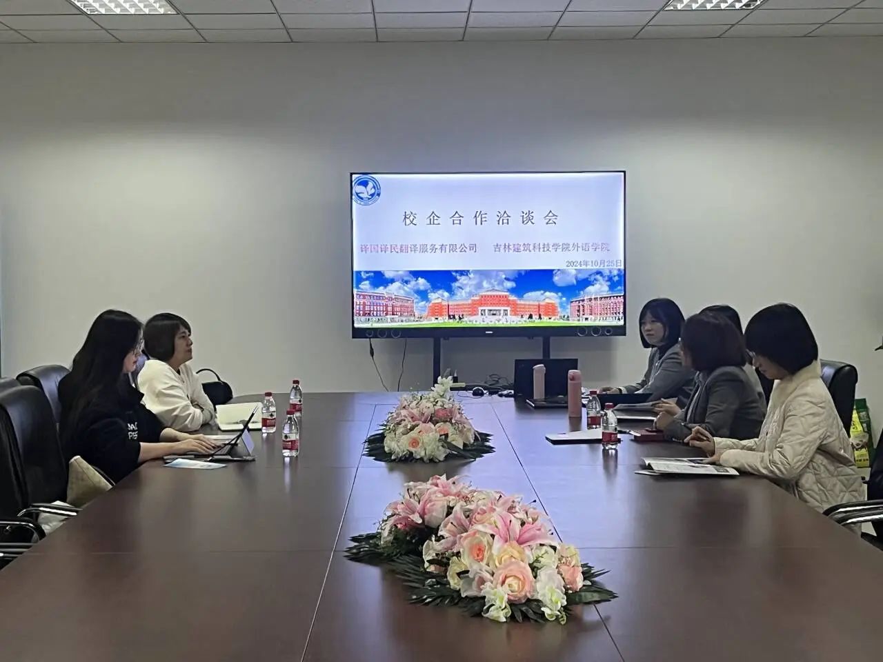 2024年10月25日下午,外语学院与译国译民翻译服务有限公司举行校企合作座谈会,外语学院院长韩松、副院长李晓雨、院长助理齐媛媛、英语专业教研室主任宋瑞雪,译国译民集团东北区经理祁方、总经理助理陆思彤出席本次会议。