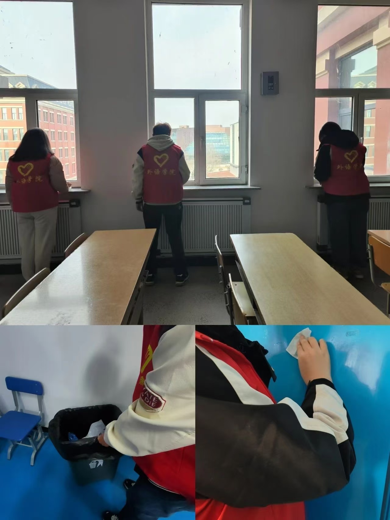 为营造良好的学习氛围,创建干净整洁的教室环境,进一步培养学生的公共卫生习惯, 11月15日外语学院语合志愿者协会在各个教室开展"我为同学做实事"主题志愿活动。