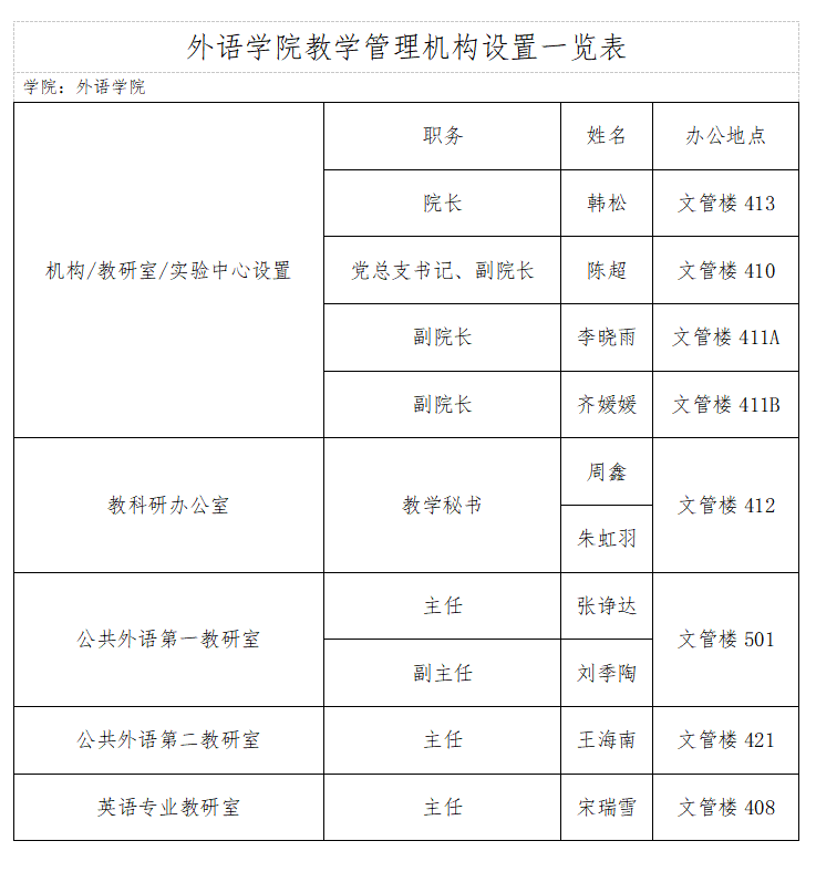 】外语学院教学管理机构设置