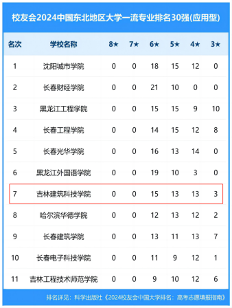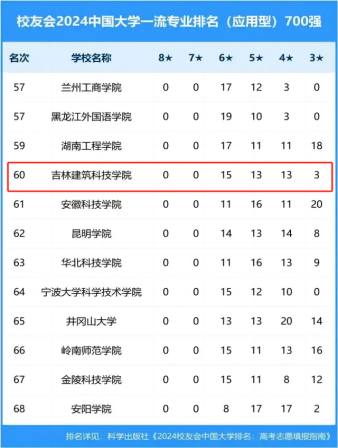 校友会2024中国大学一流专业排名吉林建筑科技学院各专业排名情况