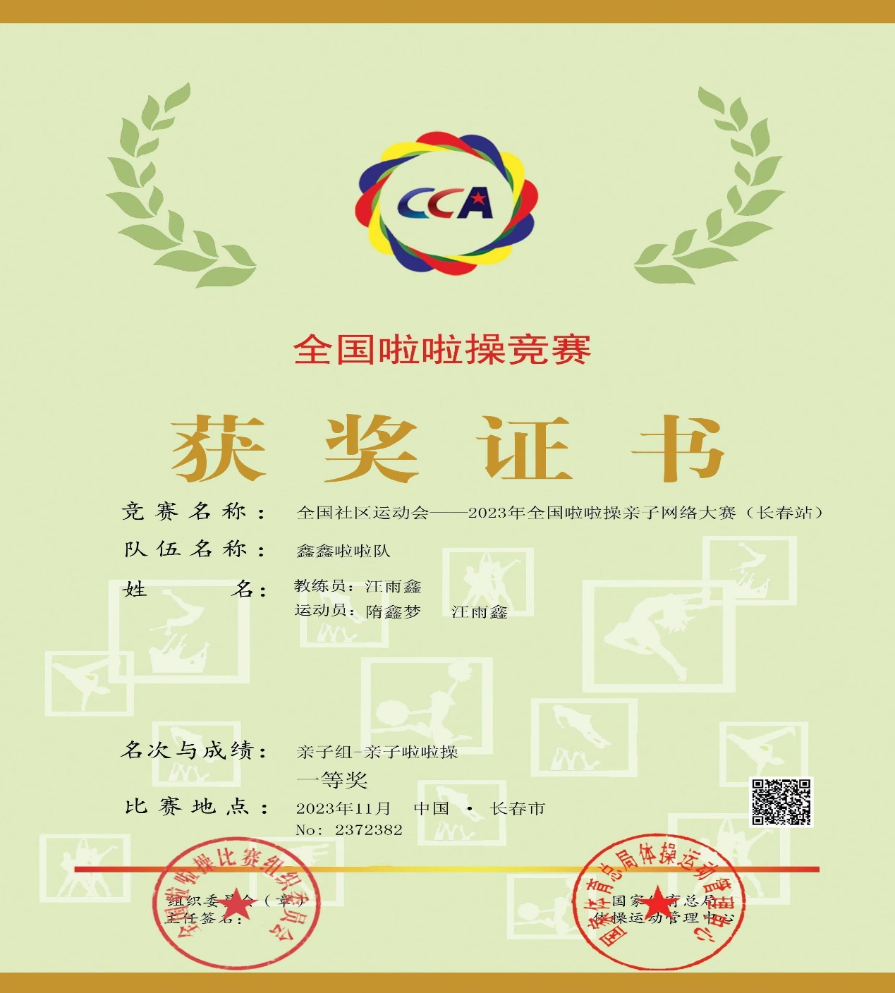 12月8日,全国社区运动会——2023全国啦啦操亲子网络大赛(长春站)比赛结果揭晓,我校健美操队获得比赛一等奖。