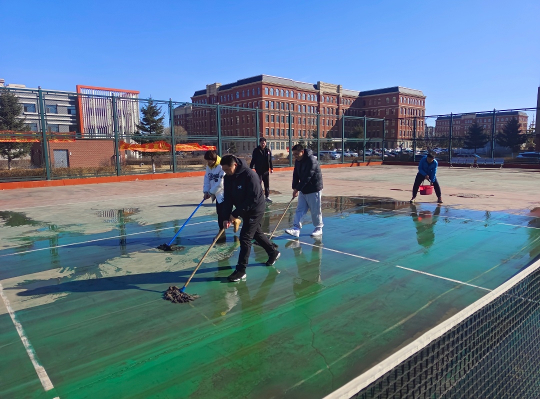 为方便学生课余运动,基础科学部部分教工党员来到学校网球场,对场地进行清洁。党员教师以身作则,学习雷锋关心他人、助人为乐,帮助身边有困难的人,贡献我们每个人的微薄力量。学习雷锋热爱集体的精神。用实际行动美化校园风貌,为同学们体育运动提供优质场地,共创文明、和谐的校园环境。