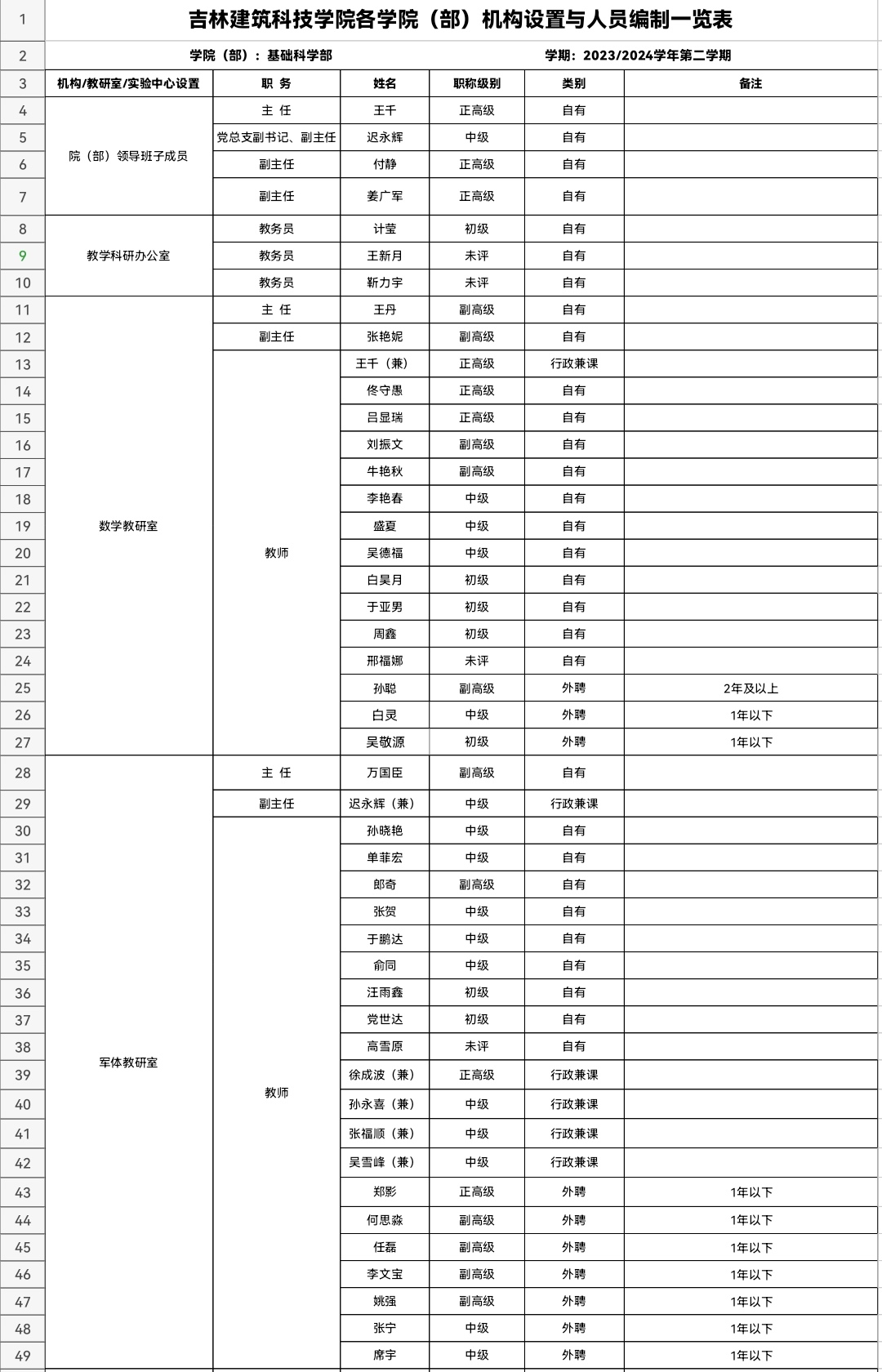 】(基础2023-2024-2)吉林建筑科技学院各学院(部)机构设置与人员编制一览表