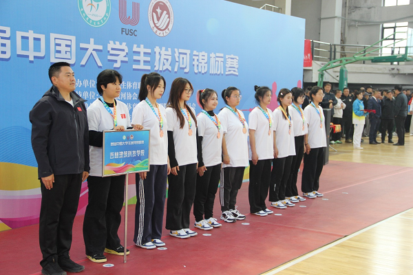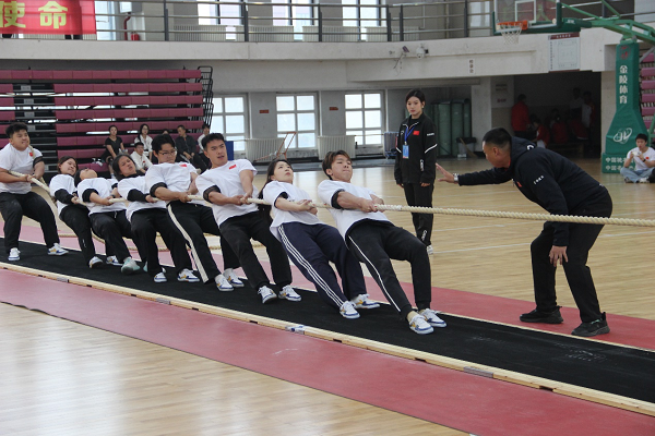 10月28日-30日,在长春工业大学体育馆进行了首届中国大学生拔河锦标赛。本次赛事由中国学生体育联合会主办,来自全国20多所高校,近400名运动员、教练员参赛,设立男子640公斤级、女子500公斤级、混合580公斤级三个项目,共计120场比赛。参赛选手按照所属院校和专业分为大学甲组、大学乙组、大学丙组三个组别。本次比赛是全国高校拔河项目的新增示范赛事,对推动拔河运动在全国高校的普及和发展具有里程碑意义。我校由军体教研室俞同老师带队参加了甲组三个级别的比赛,取得了1银2铜的优异成绩,创造了我校团体项目参加国家级别学生体育竞赛的最好成绩。