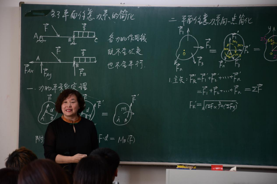 课堂上,梁教授教态自然,语言亲切,带领现场全体师生一起遨游了有趣的力学世界,共同探讨了平面任意力系的简化问题。她教学思路逻辑清晰,教学设计步步精心,教学环节密切相扣,教学技艺娴熟精湛。授课中,她无数次巧设提问,激发学生学习兴趣,促使课堂变得生动且富有余味;多次援引生活实例,激发学生高阶思维发展,促进学生知识与技能有效迁移。最后,她教育引导学生,只有善于透过现象看本质才能科学认识事物的客观规律,准确把握事物的发展趋势,从而正确地指导实践。