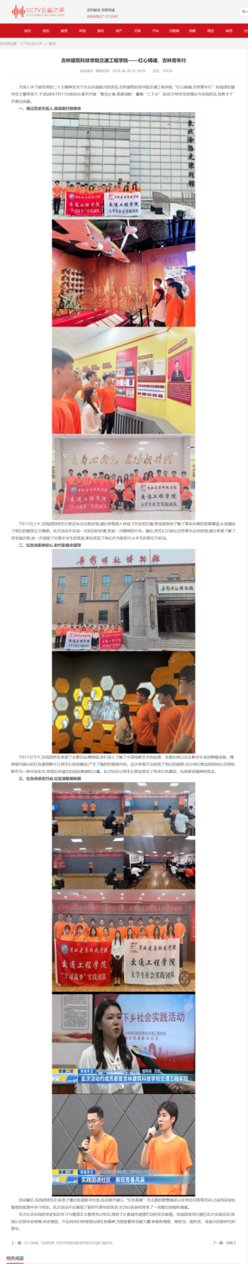 近日,我院2024年暑期“三下乡”社会实践活动被CCTV公益之声、大学生社会实践网、中华网、长春新闻网、城市速递等多家新闻媒体关注并报道。