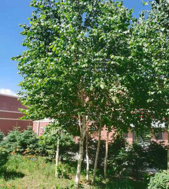 园林用途:桦树木材较坚硬,富有弹性,结构均匀,心边材不明显。抗腐能力较差,受潮易变形。可作胶合板、卷轴、枪托、细木工家具及农具用材。桦树树皮可热解提取焦油,还可制工艺品。此外,其树形美观,秋季叶变黄色,是很好的园林绿化树种。桦树萃取物被作为天然香料用在天然化妆用品中,也用作皮革油。桦树树汁被用作为补剂或制成桦树糖浆,软饮料,和其它食物。
