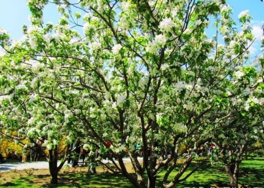 园林用途:海棠花枝繁茂,美丽动人,宜配植在门庭入口两旁、亭台、院落角隅、堂前、栏外和窗边。在观花树丛中作主体树种,下配灌木类海棠衬以常绿之乔木,妩媚动人;亦可植于草坪边缘、水边池畔、园路两侧,可作盆景或切花材料。