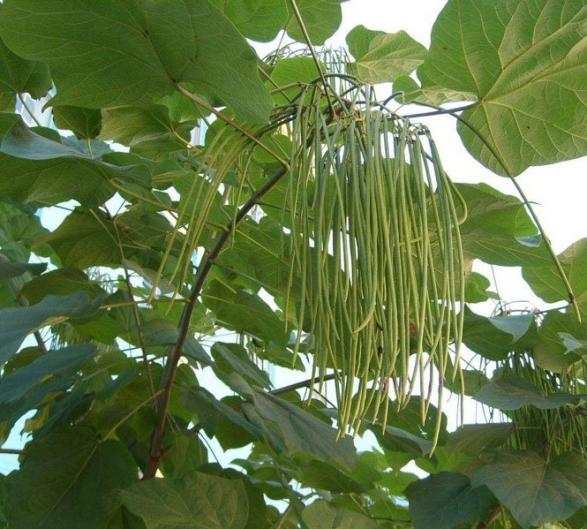 园林用途:梓树树姿优美,叶片浓密,宜作行道树、庭荫树。它花繁果茂,成簇状长条形果实挂满树枝,果期长达半年以上。它还有较强的消声、滞尘、忍受大气污染能力,能抗二氧化硫、氯气、烟尘等,是良好的环保树种,可营建生态风景林