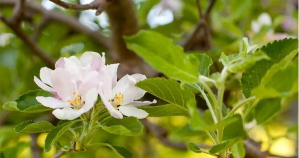 形态特征:苹果树是乔木,高可达15米,多具有圆形树冠和短主干;小枝短而粗,圆柱形,幼嫩时密被绒毛,老枝紫褐色,无毛;冬芽卵形,先端钝,密被短柔毛。